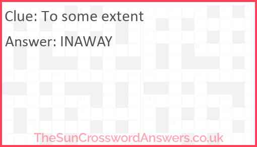 To some extent is a crossword clue for which we have 1 possible answer and we have spotted 2 times in our database. This crossword clue was last seen on 22 December 2021 in The Sun Coffee Time Crossword puzzle!