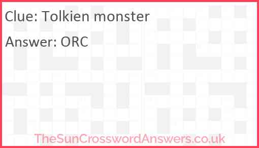 Tolkien monster is a crossword clue for which we have 1 possible answer and we have spotted 3 times in our database. This crossword clue was last seen on 14 August 2022 in The Sun Coffee Time Crossword puzzle!