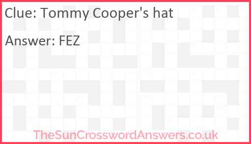 Tommy Cooper's hat is a crossword clue for which we have 1 possible answer and we have spotted 1 times in our database. This crossword clue was last seen on 16 March 2019 in The Sun Coffee Time Crossword puzzle!