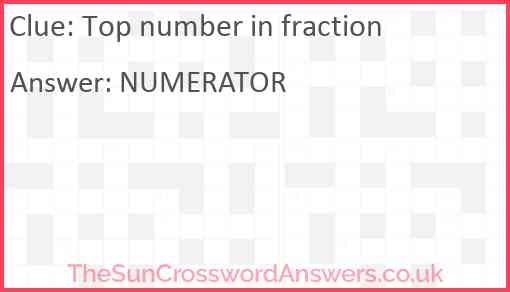 Top number in fraction is a crossword clue for which we have 1 possible answer and we have spotted 1 times in our database. This crossword clue was last seen on 19 February 2022 in The Sun Coffee Time Crossword puzzle!