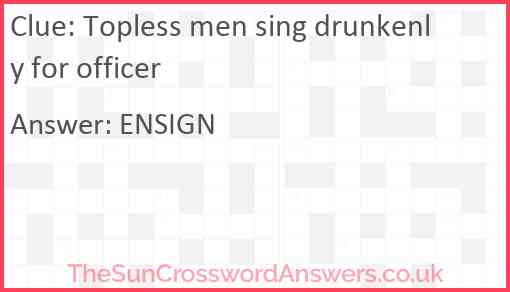 Topless men sing drunkenly for officer is a crossword clue for which we have 1 possible answer and we have spotted 2 times in our database. This crossword clue was last seen on 11 August 2022 in The Sun Cryptic Crossword puzzle!