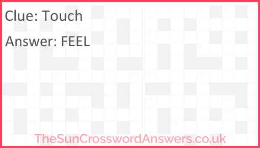 Touch is a crossword clue for which we have 1 possible answer and we have spotted 3 times in our database. This crossword clue was last seen on 18 March 2022 in The Sun Coffee Time Crossword puzzle!