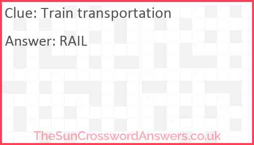 Train transportation is a crossword clue for which we have 1 possible answer and we have spotted 1 times in our database. This crossword clue was last seen on 21 June 2024 in The Sun Coffee Time Crossword puzzle!