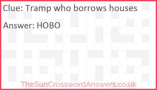 Tramp who borrows houses is a crossword clue for which we have 1 possible answer and we have spotted 2 times in our database. This crossword clue was last seen on 10 September 2023 in The Sun Cryptic Crossword puzzle!