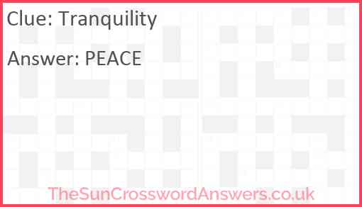 Tranquility is a crossword clue for which we have 1 possible answer and we have spotted 4 times in our database. This crossword clue was last seen on 01 April 2025 in The Sun Coffee Time Crossword puzzle!
