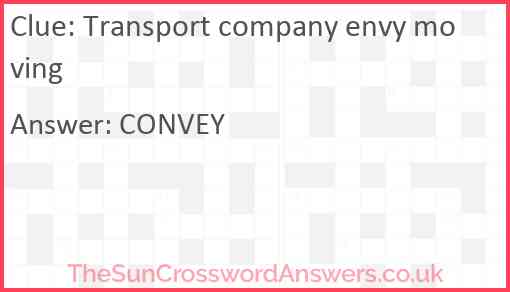 Transport company envy moving is a crossword clue for which we have 1 possible answer and we have spotted 1 times in our database. This crossword clue was last seen on 22 August 2024 in The Sun Cryptic Crossword puzzle!