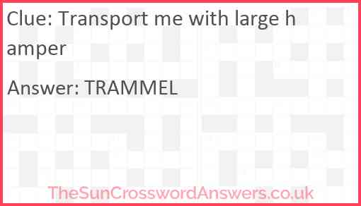 Transport me with large hamper is a crossword clue for which we have 1 possible answer and we have spotted 3 times in our database. This crossword clue was last seen on 17 February 2023 in The Sun Cryptic Crossword puzzle!