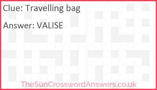 Travelling bag is a crossword clue for which we have 2 possible answer and we have spotted 7 times in our database. This crossword clue was last seen on 26 October 2024 in The Sun Coffee Time Crossword puzzle!