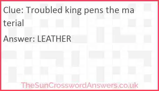 Troubled king pens the material is a crossword clue for which we have 1 possible answer and we have spotted 1 times in our database. This crossword clue was last seen on 13 February 2023 in The Sun Cryptic Crossword puzzle!