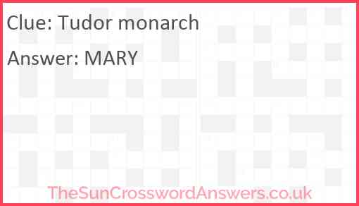 Tudor monarch is a crossword clue for which we have 1 possible answer and we have spotted 4 times in our database. This crossword clue was last seen on 09 January 2023 in The Sun Coffee Time Crossword puzzle!