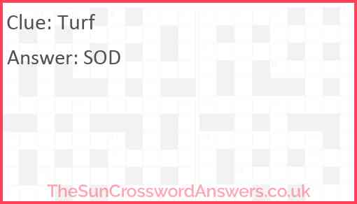 Turf is a crossword clue for which we have 2 possible answer and we have spotted 4 times in our database. This crossword clue was last seen on 23 August 2023 in The Sun Coffee Time Crossword puzzle!