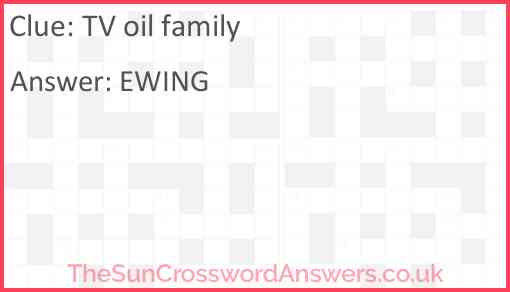 TV oil family is a crossword clue for which we have 1 possible answer and we have spotted 7 times in our database. This crossword clue was last seen on 15 May 2024 in The Sun Coffee Time Crossword puzzle!