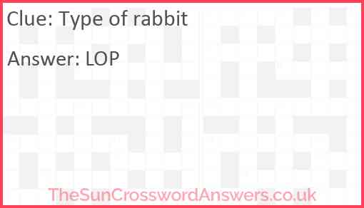 Type of rabbit is a crossword clue for which we have 1 possible answer and we have spotted 1 times in our database. This crossword clue was last seen on 12 February 2020 in The Sun Coffee Time Crossword puzzle!
