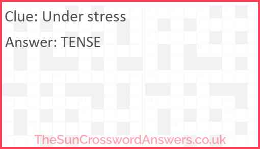 Under stress is a crossword clue for which we have 1 possible answer and we have spotted 1 times in our database. This crossword clue was last seen on 16 January 2025 in The Sun Coffee Time Crossword puzzle!