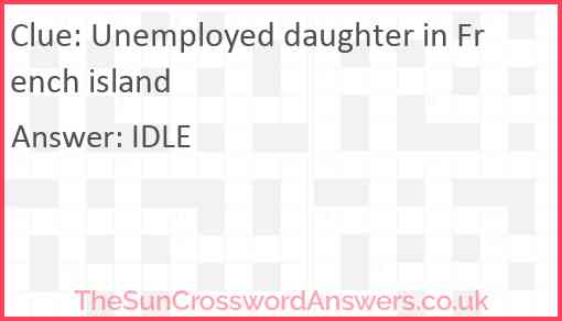 Unemployed daughter in French island is a crossword clue for which we have 1 possible answer and we have spotted 3 times in our database. This crossword clue was last seen on 27 May 2023 in The Sun Cryptic Crossword puzzle!