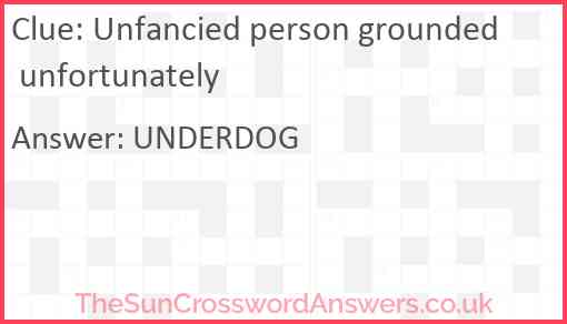 Unfancied person grounded unfortunately is a crossword clue for which we have 1 possible answer and we have spotted 1 times in our database. This crossword clue was last seen on 17 January 2023 in The Sun Cryptic Crossword puzzle!