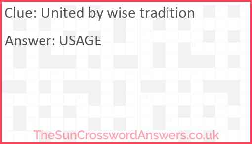 United by wise tradition is a crossword clue for which we have 1 possible answer and we have spotted 1 times in our database. This crossword clue was last seen on 09 March 2025 in The Sun Cryptic Crossword puzzle!