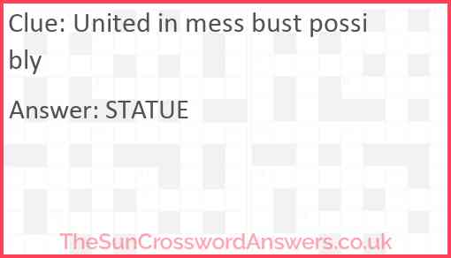 United in mess bust possibly is a crossword clue for which we have 1 possible answer and we have spotted 1 times in our database. This crossword clue was last seen on 26 June 2024 in The Sun Cryptic Crossword puzzle!
