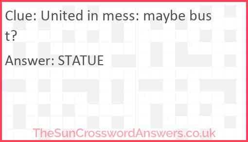 United in mess: maybe bust? is a crossword clue for which we have 1 possible answer and we have spotted 2 times in our database. This crossword clue was last seen on 05 August 2023 in The Sun Cryptic Crossword puzzle!
