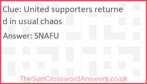 United supporters returned in usual chaos is a crossword clue for which we have 1 possible answer and we have spotted 2 times in our database. This crossword clue was last seen on 28 February 2025 in The Sun Cryptic Crossword puzzle!