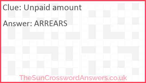 Unpaid amount is a crossword clue for which we have 1 possible answer and we have spotted 5 times in our database. This crossword clue was last seen on 26 July 2025 in The Sun Coffee Time Crossword puzzle!