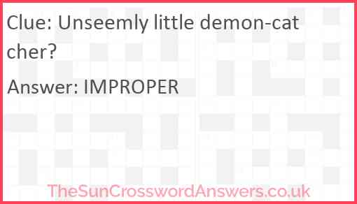 Unseemly little demon-catcher? is a crossword clue for which we have 1 possible answer and we have spotted 2 times in our database. This crossword clue was last seen on 02 January 2022 in The Sun Cryptic Crossword puzzle!
