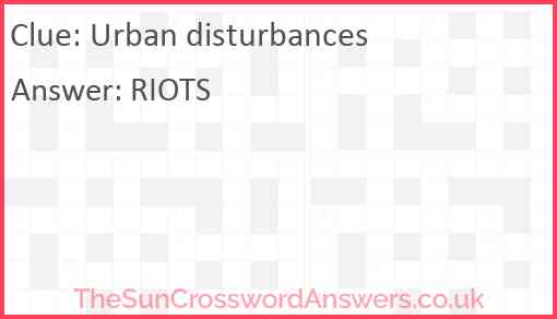 Urban disturbances is a crossword clue for which we have 1 possible answer and we have spotted 1 times in our database. This crossword clue was last seen on 02 January 2022 in The Sun Coffee Time Crossword puzzle!