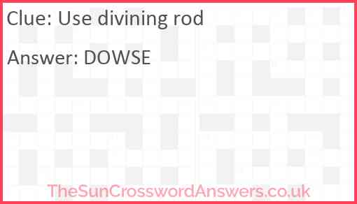 Use divining rod is a crossword clue for which we have 1 possible answer and we have spotted 2 times in our database. This crossword clue was last seen on 14 November 2022 in The Sun Coffee Time Crossword puzzle!