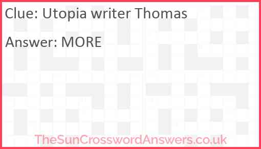 Utopia writer Thomas is a crossword clue for which we have 1 possible answer and we have spotted 1 times in our database. This crossword clue was last seen on 12 January 2024 in The Sun Coffee Time Crossword puzzle!