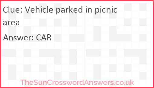 Vehicle parked in picnic area is a crossword clue for which we have 1 possible answer and we have spotted 2 times in our database. This crossword clue was last seen on 12 April 2025 in The Sun Cryptic Crossword puzzle!