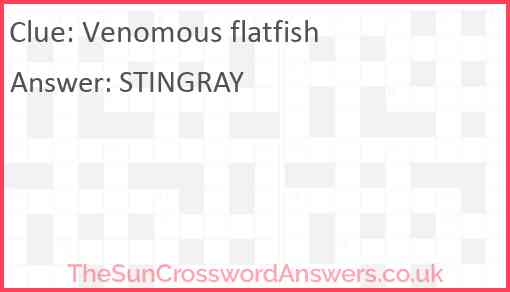 Venomous flatfish is a crossword clue for which we have 1 possible answer and we have spotted 4 times in our database. This crossword clue was last seen on 18 January 2025 in The Sun Coffee Time Crossword puzzle!