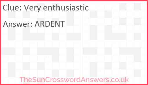 Very enthusiastic is a crossword clue for which we have 1 possible answer and we have spotted 5 times in our database. This crossword clue was last seen on 20 January 2025 in The Sun Coffee Time Crossword puzzle!