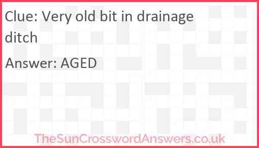 Very old bit in drainage ditch is a crossword clue for which we have 1 possible answer and we have spotted 3 times in our database. This crossword clue was last seen on 01 August 2022 in The Sun Cryptic Crossword puzzle!