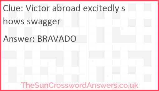 Victor abroad excitedly shows swagger is a crossword clue for which we have 1 possible answer and we have spotted 2 times in our database. This crossword clue was last seen on 30 July 2024 in The Sun Cryptic Crossword puzzle!