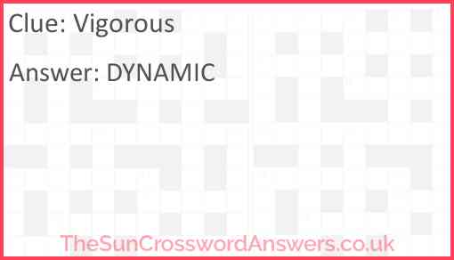 Vigorous is a crossword clue for which we have 2 possible answer and we have spotted 10 times in our database. This crossword clue was last seen on 16 June 2024 in The Sun Coffee Time Crossword puzzle!