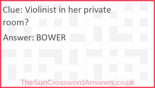 Violinist in her private room? is a crossword clue for which we have 1 possible answer and we have spotted 1 times in our database. This crossword clue was last seen on 02 June 2024 in The Sun Cryptic Crossword puzzle!