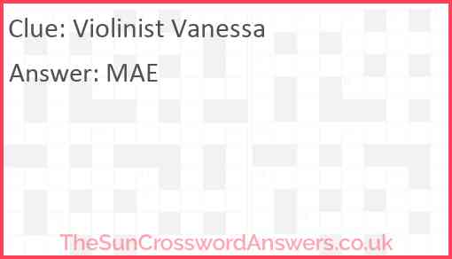 Violinist Vanessa is a crossword clue for which we have 1 possible answer and we have spotted 2 times in our database. This crossword clue was last seen on 30 January 2022 in The Sun Coffee Time Crossword puzzle!