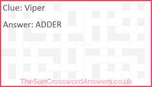 Viper is a crossword clue for which we have 1 possible answer and we have spotted 21 times in our database. This crossword clue was last seen on 09 January 2025 in The Sun Coffee Time Crossword puzzle!