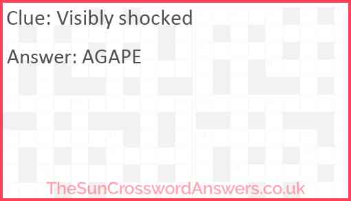 Visibly shocked is a crossword clue for which we have 1 possible answer and we have spotted 4 times in our database. This crossword clue was last seen on 19 July 2025 in The Sun Coffee Time Crossword puzzle!