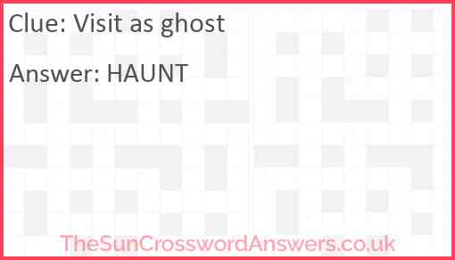 Visit as ghost is a crossword clue for which we have 1 possible answer and we have spotted 2 times in our database. This crossword clue was last seen on 03 December 2020 in The Sun Coffee Time Crossword puzzle!