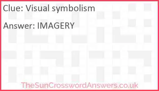 Visual symbolism is a crossword clue for which we have 1 possible answer and we have spotted 3 times in our database. This crossword clue was last seen on 14 December 2023 in The Sun Coffee Time Crossword puzzle!