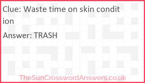 Waste time on skin condition is a crossword clue for which we have 1 possible answer and we have spotted 1 times in our database. This crossword clue was last seen on 30 September 2021 in The Sun Cryptic Crossword puzzle!