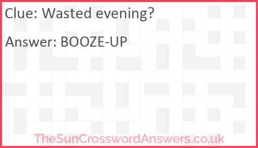 Wasted evening? is a crossword clue for which we have 2 possible answer and we have spotted 4 times in our database. This crossword clue was last seen on 17 April 2024 in The Sun Cryptic Crossword puzzle!