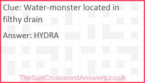 Water-monster located in filthy drain is a crossword clue for which we have 1 possible answer and we have spotted 1 times in our database. This crossword clue was last seen on 20 December 2023 in The Sun Cryptic Crossword puzzle!