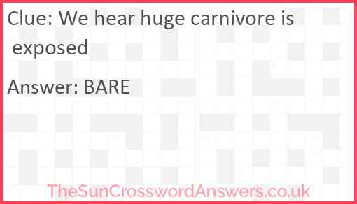 We hear huge carnivore is exposed is a crossword clue for which we have 1 possible answer and we have spotted 1 times in our database. This crossword clue was last seen on 27 November 2024 in The Sun Cryptic Crossword puzzle!