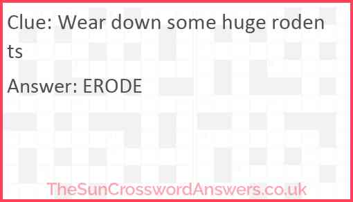 Wear down some huge rodents is a crossword clue for which we have 1 possible answer and we have spotted 3 times in our database. This crossword clue was last seen on 25 June 2024 in The Sun Cryptic Crossword puzzle!