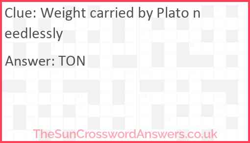 Weight carried by Plato needlessly is a crossword clue for which we have 1 possible answer and we have spotted 2 times in our database. This crossword clue was last seen on 29 May 2025 in The Sun Cryptic Crossword puzzle!