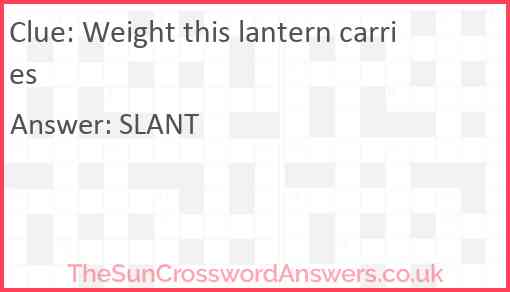 Weight this lantern carries is a crossword clue for which we have 1 possible answer and we have spotted 2 times in our database. This crossword clue was last seen on 08 September 2024 in The Sun Cryptic Crossword puzzle!