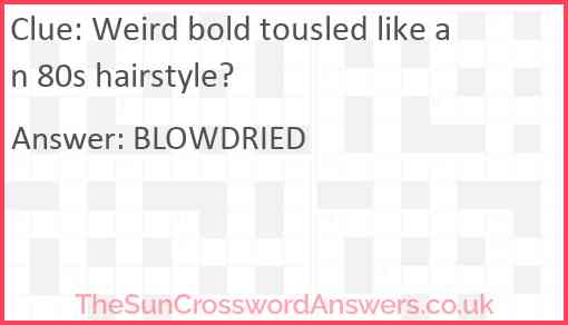 Weird bold tousled like an 80s hairstyle? is a crossword clue for which we have 1 possible answer and we have spotted 1 times in our database. This crossword clue was last seen on 29 August 2024 in The Sun Cryptic Crossword puzzle!