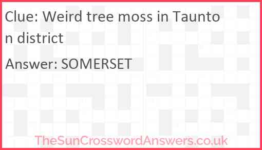 Weird tree moss in Taunton district is a crossword clue for which we have 1 possible answer and we have spotted 2 times in our database. This crossword clue was last seen on 17 June 2024 in The Sun Cryptic Crossword puzzle!